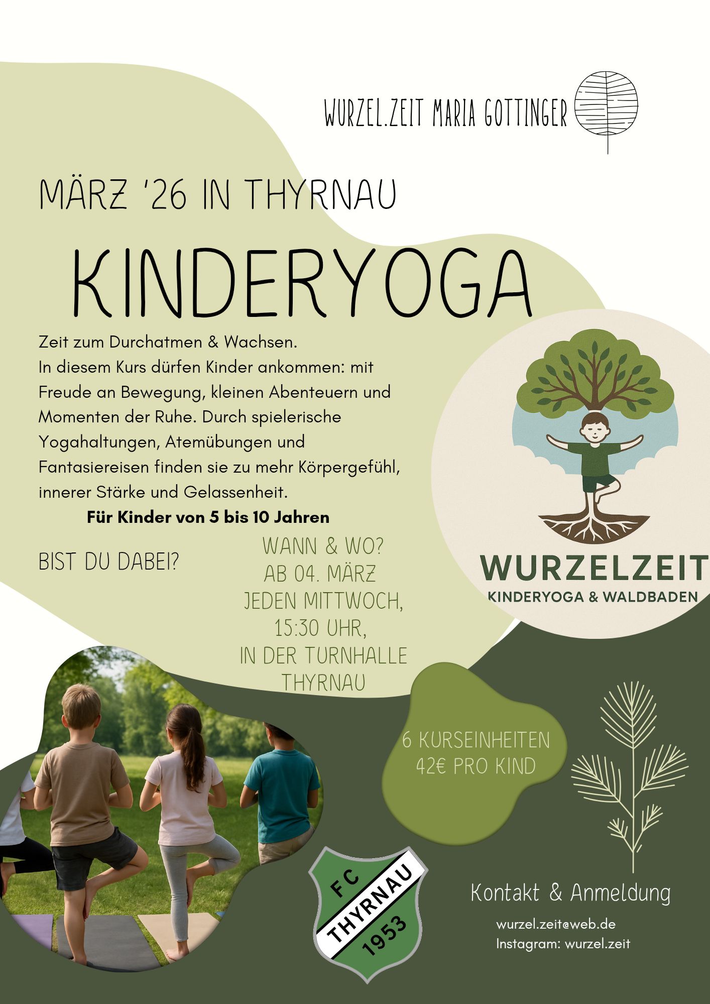 Der FC Thyrnau bietet ab März 2026 ein neues Angebot für Kinder an: Kinderyoga in Kooperation mit der zertifizierten Kinderyoga-Lehrerin Maria Gottinger.