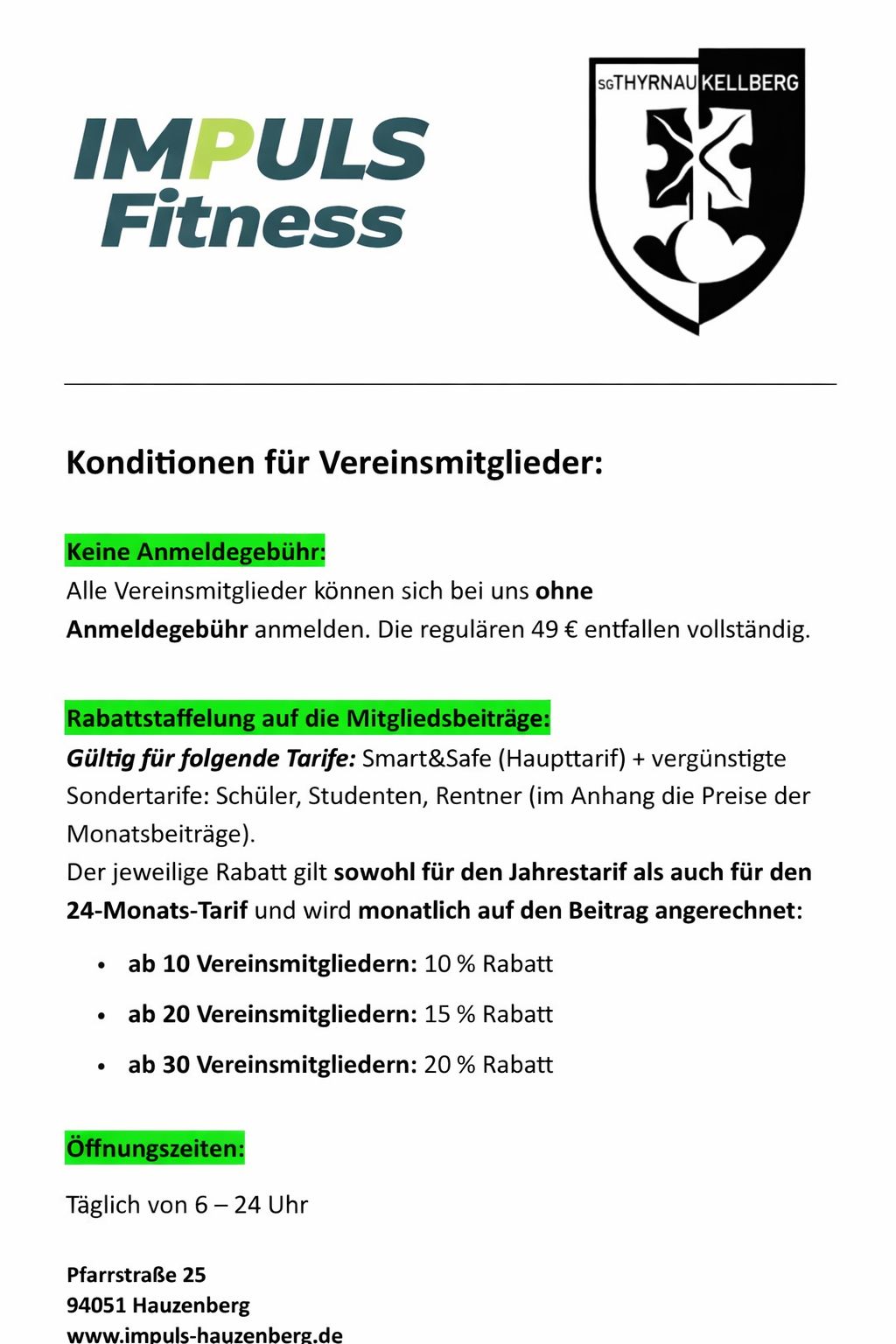 Neuer Fitness-Kooperationspartner für unsere SG: Impuls Fitness